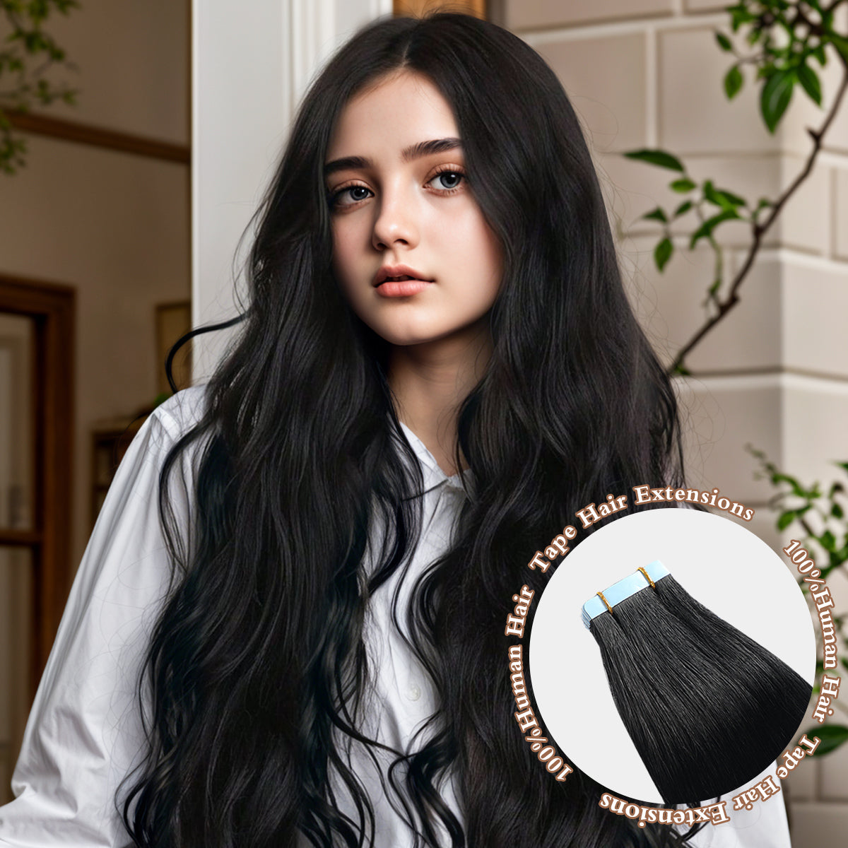 Invisible Tape in Hair Extensions Human Hair Jet Black Seamless Injected Hand-Tied Pro Quality Virgin Human Hair 20PCS 50G/Pack Straight Tape Ins