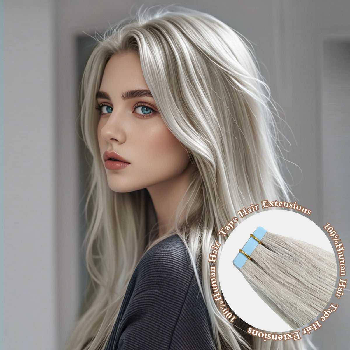 Invisible Tape in Hair Extensions Human Hair Jet Black Seamless Injected Hand-Tied Pro Quality Virgin Human Hair 20PCS 50G/Pack Straight Tape Ins 60#Platinum Blonde
